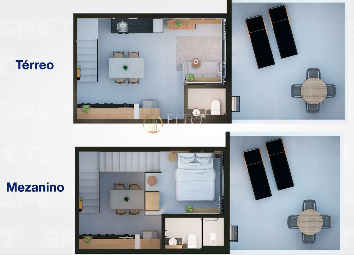 Mezanino: suíte ampla e bem iluminada, garantindo privacidade e conforto.