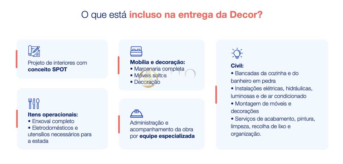 Entregue conforme o projeto, 100% mobiliado, decorado e equipado.