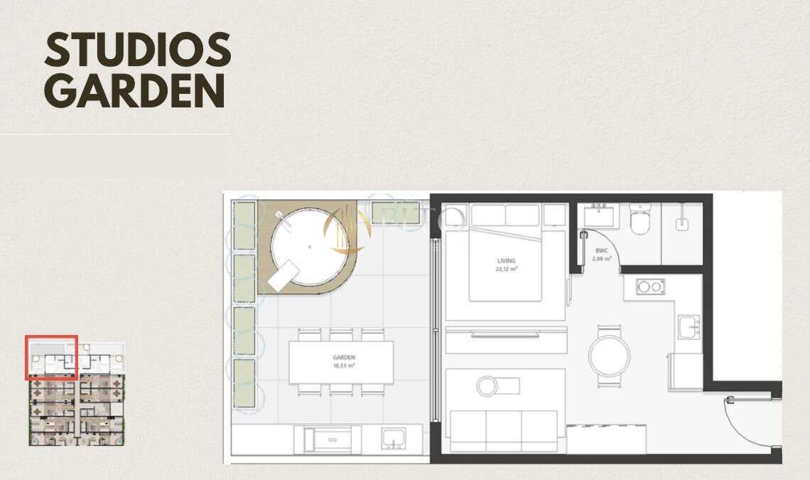 25 m² privativos + 18,53 m² de garden