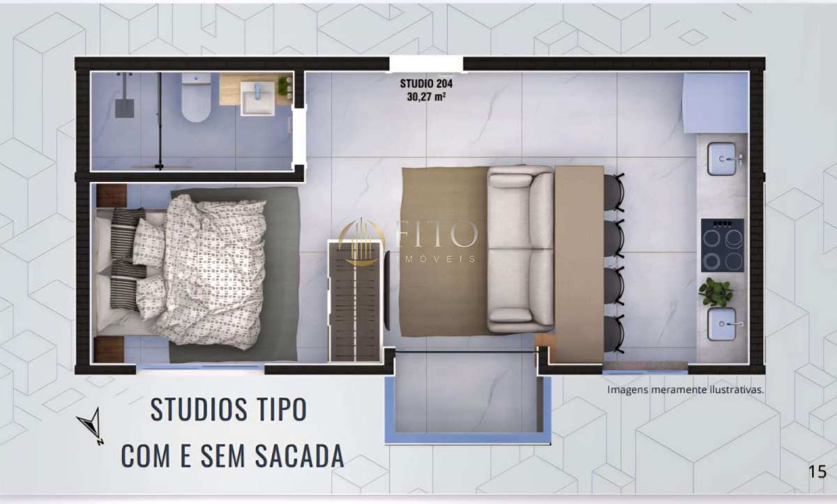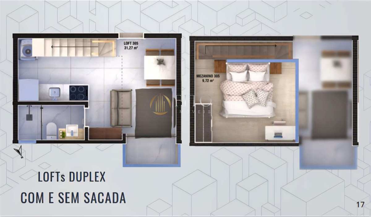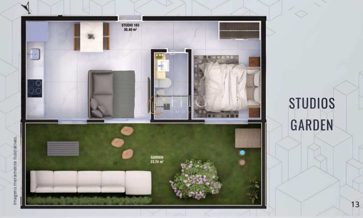 Plantas inteligentes de 26,7 m² a 95,9 m², incluindo studios com e sem sacada, gardens e lofts — soluções versáteis para uso próprio ou geração de renda com locação.